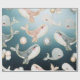 Baleias Cutâneas De Cor D'Água No Mar Papel Azul De Embalagem Perfeito Para Crianças, Aniversário E Chá de fraldas