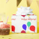 Feliz Aniversário está escrito em texto cor de laranja vermelho. Balões em vermelho, azul, laranja, verde, amarelo. Arte original © TamiraZDesign.
