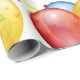 Enrole seus presentes neste papel de embrulho em estilo de festa. Este papel apresenta um impressão de balão vermelho azul e amarelo em todo o design. Há também vários streams de cores no plano de fundo. Um jornal clássico para os presentes da sua festa.