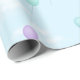 Este design alegre de papel de embrulho tem balões coloridos pastel voando através de um céu azul cheio de nuvens brancas fofas.