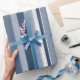 Design azul de tendência apresenta tons de faixas verticais azuis e brancas com a nossa textura de pincel seco. Desenhos personalizados disponíveis, basta enviar-nos a sua solicitação.