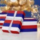 O papel de embrulho de presente mostra listras nas cores azul, branca e vermelha da bandeira da França. Honre a sua cultura e ancestralidade. Diversão para as comemorações do Dia da Bastilha. Perfeito para reuniões familiares, viagem e clubes. Excelente de presentes para familiares e amigos do patrimônio francês.