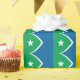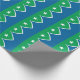Papel embrulhando com um design com um design com a bandeira de Cedar Rapids, Iowa. Uma bandeira verde e azul com uma estrela branca