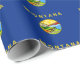 Dentro do selo, de um arado, da pá, e do resto da picareta em um campo na frente de Great Falls do Rio Missouri. A fita contem a divisa do estado, plata de Oro y (espanhol para o "ouro e a prata"). A bandeira atual foi adotada em 1905, e a palavra "Montana" acima do selo foi adicionada em 1981. Em 1985, a bandeira foi alterada outra vez para especificar a pia batismal usada em "Montana: " Corajoso Helvética. Antes que estêve adotada como uma bandeira do estado, foi usada pelas tropas de Montana que distribuem para guerra espanhola/americana.