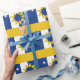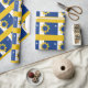 Enrolando papel com um design com a bandeira de Topeka, Kansas. Uma bandeira azul e branca com um símbolo amarelo