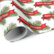 Banner de Natal Red Merry sobre tosse de pinheiro verde e fundo branco. A cor de fundo pode ser alterada.