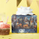 Libere o espírito assustador com esta design sombria do Dia das Bruxas apresentando um bando de cachorros sob um céu escuro e iluminado, cercado por morcegos voadores e abóboras brilhantes. Perfeito para aqueles que amam um toque de diversão terrível com seus amigos peludos!