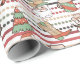 Espantoso e divertido jornal de natal de cowboy do oeste. Torna-se para embrulho festivo. O design inclui botas e chapéus de cowboy, papais noeis, bonecos de neve, homens de gengibre, meias, luzes de Natal, canas doces, bagas sagradas e chocolate quente. Trilha branca e fundo do padrão de bolinhas.