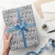 Estampa de tecido batik moderna inspirada em tribal - tons de cinza, de prata claro a carvão profundo, acentuado com preto e branco