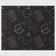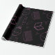 Batom, pente e caixa de pó, pincel, perfume e arcos. Rosa em preto. Padrão sem costura