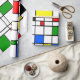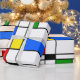 Este tem um design Bauhaus em cores primárias que se parece com vidro colorido. Colorida, corajosa, divertida!
