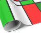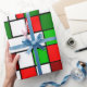 Este papel de embrulho tem uma design de Natal inspirada em Bauhaus em verde e vermelho. Excelente por baixo da sua árvore.