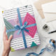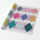 Este papel de embrulho tem um design de ouros Bauhaus em cinzas com um design para parecer como colcha.