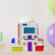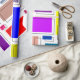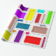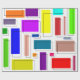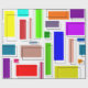 Este papel de embrulho tem um design de retângulos Bauhaus em muitas cores com seus contornos pretos em offset.