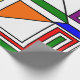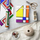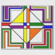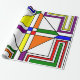 Este papel de embrulho tem um design Bauhaus de linhas, triângulos, diamantes e fazeres quadrados, um olhar colorido em cores primárias e secundárias.