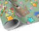 Papel de embrulho Festa de Aniversário do Bicho Preguiça Fofo com Padrão Verde