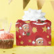 Papel de embrulho de Natal com ilustração de um bebê ou rapaz feliz sorridente e fofo, o bebê está a vestir roupas vermelhas e brancas e a segurar um presente; com modelo de texto editável para o seu nome ou mensagem, design de feriados de Natal com um fundo vermelho sem costura com estrelas