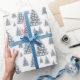 Celebrate the holidays with a soft coastal twist using this wrapping paper featuring a watercolor Christmas tree in sage green. The tree is decorated with blue and white seashells and is topped with a white starfish, creating an overall blue and white color palette. The background is currently white, but you can change it to any color to match your holiday style. This beachy, whimsical pattern is perfect for adding a relaxed and festive touch to your Christmas gift wrapping.