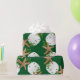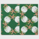Papel de embrulho de Natal de qualidade num rolo com estrelas e design de areia. Esta imagem grande é impressa sobre uma cor verde-escura de fundo, com conchas e holly em fazer castanho, branco e verde, um padrão circular de coroa. Se você não vir uma cor de fundo que quiser, poderá escolher a sua na área "personalizar mais".