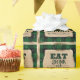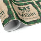 Este papel de embrulho de presente personalizado apresenta um tema de Natal festivo. O plano de fundo apresenta um padrão verde rústico de xadrez de Buffalo espalhado com flocos de neve. Um poster de papel pergaminho vintage é impresso no centro e enquadrado com uma borda de estilo folha de ouro. A frase "Coma Bebida e Seja Feliz" é impressa no topo em uma fonte verde escura, seguida de um nome de família de amostra. Você pode personalizar o papel de empacotamento para incluir seu próprio nome personalizado ou outro texto.