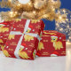 Dinossauro amarelo adorável do bebê que veste um chapéu do papai noel do Natal, papel de embrulho perfeito para presentes de Natal dos miúdos.