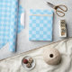 Padrão de tabuleiro retroativo com a cor de fundo de sua escolha. Azul-bebê e papel de embrulho de chá de fraldas-tom mais leve. Encapsulamento clássico de presentes.