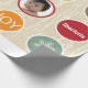 Foto de seu bebê ou criança ou família em Feliz brilhante colorido e papel de embrulhamento da paz de alegria brilhante para os feriados