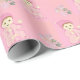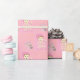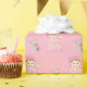 Uma lembrança infantil bonito do bebé que caracteriza um bebê de assento vestiu-se no rosa em um fundo do rosa pastel com um conjunto de rosas.
