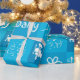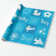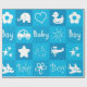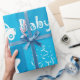 Design de anúncio do bebê em azul e branco em fundo quadrado