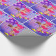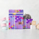 Bebê da vaquinha andando com papel de embrulho de cavalo. O fundo é roxo com balões. galhos e estrelas. Este design está disponível em outros suprimentos.