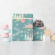 A minha ilustração vetorial original de um mash atômico de meio século de boliches de pinos, bolas de boliche, pinos de boliche, sinais, bumerangue e estrelados, em cor rosa, verde, azul, preto e esbranquiçado.