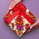 Papel de embrulho branco retrô vermelho de arcos vermelhos bege. Celebrar as férias e o Natal com um belo papel colorido de embrulho em todos os seus presentes.