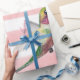 Papel De Presente Beija-flor. Rosa e Branco.