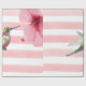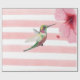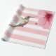 Papel de embrulho de verão, com listras rosa e branca. Bonito Hummingbird, zunido perto de uma flor tropical, Hibiscus.