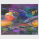 Legal imagem de uma ave colorida. Sentado em um galho de árvore. Com um legal fundo abstrato azul e roxo. O pássaro tem penas torácicas de várias cores. Com asas pretas. E uma cauda laranja e azul.Clique no botão Personalizar para adicionar seu próprio texto ou imagens para criar um único de um tipo de design! Torne-se criativo e use este papel padronizado divertido para mais do que apenas um presente. As possibilidades são infinitas!