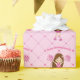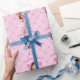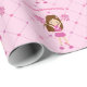 Este papel de empacotamento de aniversário bonito e personalizado apresenta um desenho de um cheerleader bonito de morena em um uniforme alegre, segurando pom rosa. Personalize este belo presente de aniversário de criança com o nome de uma garota entre o padrão cardíaco divertido.
