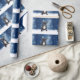 Papel De Presente Belo Buldogue Francês Estrelas de Neve Azul Natal