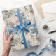 Bonitos bolinhos de Natal azuis e plástico floral. Papéis de embrulho de presente de Natal azuis. Design elegante e sem falhas.
