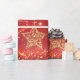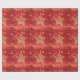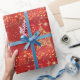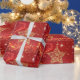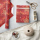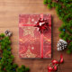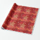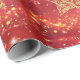 Bonito papel de embrulho de Natal com estrela de aparência metálica dourada, estrelas cintilantes e brilho em vermelho.