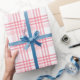 Papel De Presente Belo Padrão Xadrez de Vermelho e Rosa