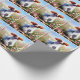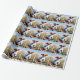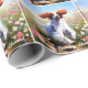 Um setter marrom e branco corre alegremente através de um campo de flores nesta trabalho de arte divertida.