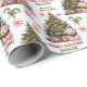 O padrão repetido neste papel de embrulho de Natal inclui uma imagem de um adorável pequeno urso polar branco bebê vestindo um chapéu de Papai Noel vermelho e branco e um cachecol vermelho. Ele está segurando uma estrela branca para colocar na árvore decorada de Natal. O texto vermelho e verde diz MERRY CHRISTMAS", com o nome do seu filho e sua assinatura abaixo. Outras imagens incluídas no padrão incluem flocos de neve decorativos vermelhos, presentes envoltos com brilho e canetas doces amarradas com um arco.