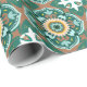 Belo padrão marroquino inspirado pelo famoso trabalho de azulejo do Marrocos. Perfeito como deco caseiro ou como presente para a pessoa da moda. Papel de enrolamento, amarelo, branco e tons de minúsculo verde - turquesa