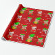 Belos Elfos de Natal em fundo vermelho Papel de embrulho para presentes.