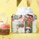 Cachorro Bernese, sentado do lado de fora da casa decorada com coroa de Natal, a árvore de Natal é uma ideia perfeita de presente de Natal para amantes de cachorros.