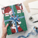 Festa de Natal Festiva Cão de Montanha Bernese vestindo rabisco de rabisco de rabisco de rabisco e o chapéu de Papai Noel segurando cana doce em sua boca. Papel de embrulho de natal bonito para amantes de berner!