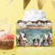 This festive design captures the joyful spirit of the holiday season, featuring an adorable dogs.Nestled in a winter wonderland, complete with a decorated Christmas tree, and beautifully wrapped presents. Snowflakes gently fall, adding a magical touch to the scene, while the vibrant colors of the holiday decorations create a warm and cheerful atmosphere.