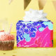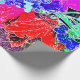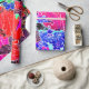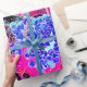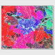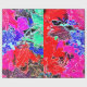 Um design de abstrato de frutas e folhas em cores vibrantes.