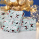 Bichon bonito frita os cães de Natal em camisolas de argyle e os chapéus de Santa sentam-se, ficam de pé e rollover com canas doces e ornamentos num fundo azul claro.
