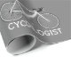 Bicicleta branca com texto do CYCOLGIST sobre fundo de cinza. A cor de fundo pode ser alterada.
